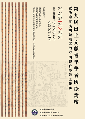2021年3月20日至21日,“第九届出土文献青年学者国际论坛暨先秦秦汉荆楚地区的空间整合学术工作坊”在线上成功举办。本次论坛与工作坊由365best体育亚洲官网简帛研究中心、历史地理研究所以及365best体育亚洲官网人文社会科学研究院主导组建的“新资料与先秦秦汉荆楚地区的空间整合”青年学者学术团队联合主办,来自中国、日本、韩国、美国等国家,中国澳门、中国台湾等地区二十余所高校和科研机构的三十余位青年学者参与了主持、发表和讨论。