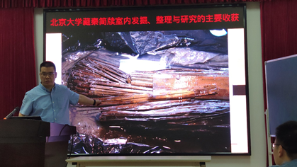首先,杨先生指出,北大秦简牍的室内整理为以后同类遗存的发掘和清理工作积累了经验。对北大秦简牍的整理保护,采用了室内发掘方式进行。秦简牍整理课题组先后撰写的《简牍发掘方法浅说——以北大藏秦简牍室内发掘为例》、《北京大学藏秦简牍室内发掘清理报告》等报告,借鉴田野考古工作的程序,介绍了一套对竹简的室内发掘、保护较为完备的室内考古发掘技术流程和发掘方法;形成了一整套适用于饱水竹简发掘的工具和仪器,通过实验证实了饱水竹简的最佳保存环境和保护方法;并对竹简的科技检测与保护从理论上进行了探索。这些都为以后同类遗存的发掘和清理工作积累了经验,提供了有益的参考。