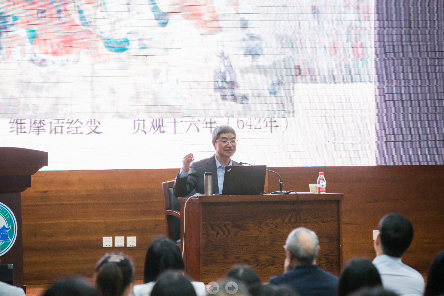 最后,赵声良教授展示了敦煌研究院在文物保护和敦煌学研究上的成果,他表示,对敦煌文化的保护、研究、弘扬是敦煌研究院始终不移的方针。改革开放以后,科学保护工作迅速发展起来,通过国际合作,敦煌研究院在保护科技与敦煌学研究方面取得了丰硕成果,在研究的基础上,积极推动国内外举办敦煌艺术展,把敦煌艺术介绍到世界各地。同时,他呼吁大家保护历史文化遗产,历史文化遗产作为载体,承载着中华文明的精神脉络和文化基因,塑造了中华民族的精神魂魄,历史文化遗产保护是全民性的工作,每一个中国人都有责任来保护我们的历史文化遗产。