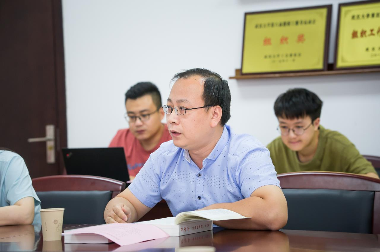 院党政办公室主任、专职组织员屈路明老师结合自身参加学习会议的经历,强调学院历来重视理论学习的优良传统。随后对《习近平谈治国理政》第一至四卷的主要内容及其内在联系做出详细分析,认为应当将四卷书作为有机整体结合学习。除此之外,对于《习近平谈治国理政》第四卷的学习需要抓住“疫情防控”等重点内容,并且要及时、广泛开展支部内的学习。