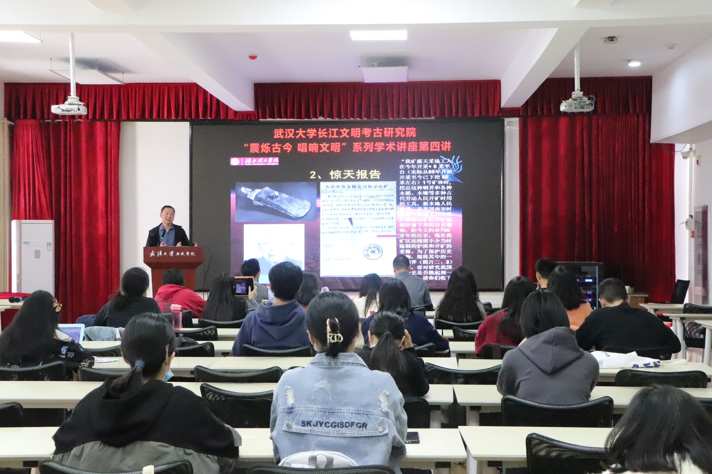 陈树祥研究员的讲解专业、详实,既加深了同学们对铜绿山遗址的认识,也充分阐明了铜绿山遗址的重要价值与影响。讲座最后,同学们与陈树祥研究员进行了充分、热烈的交流互动,陈树祥研究员耐心解答了大家关于遗址发掘、多学科交叉、课题研究等方面的疑问,同时希望同学们未来能够为铜绿山遗址的研究做出自己的学术贡献。