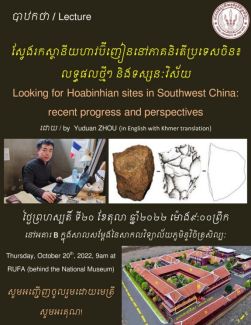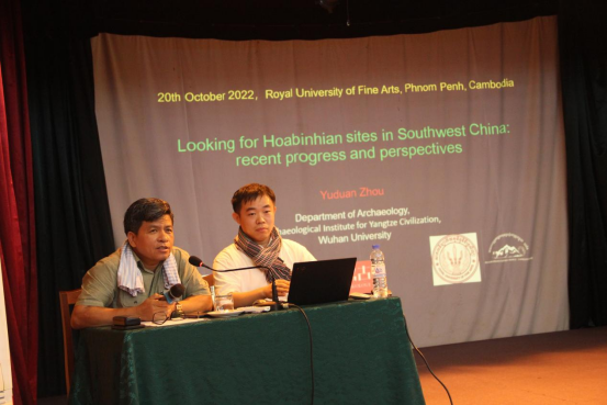2022年10月20日上午,受柬埔寨皇家艺术大学邀请,365best正在柬埔寨文化与艺术部进行学术合作研究的周玉端副教授,在皇家艺术大学报告厅为该校考古系师生做了题为《在中国西南地区寻找和平文化遗址:进展与展望》(Looking for Hoabinhian sites in Southwest China: recent progress and perspectives)的英文学术报告。本次报告由柬埔寨皇家艺术大学校长兼文化与艺术部副部长恒·苏巴帝(Heng Sophady)教授主持并翻译。皇家艺术大学考古系主任杨·拉塔纳(Young Ratana)、考古系部分师生、法国国家自然历史博物馆以及法国格勒诺布尔-阿尔卑斯大学的研究人员等60余人参加了学术报告。