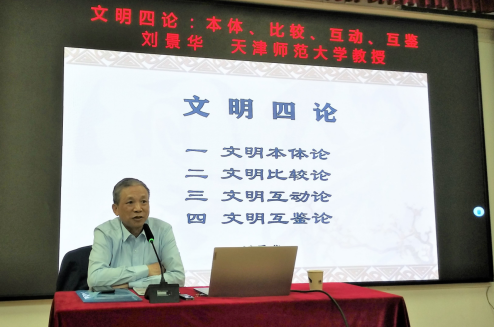 刘老师认为文明是高级阶段的文化形态,通常有两种涵义:一是标志社会进步程度;二是一种文化体,一种历史文化单位。对文明进行深入研究具有重要的学术、社会和现实意义。据此,刘老师分别阐释了自己的文明本体论、比较论、互动论和互鉴论。