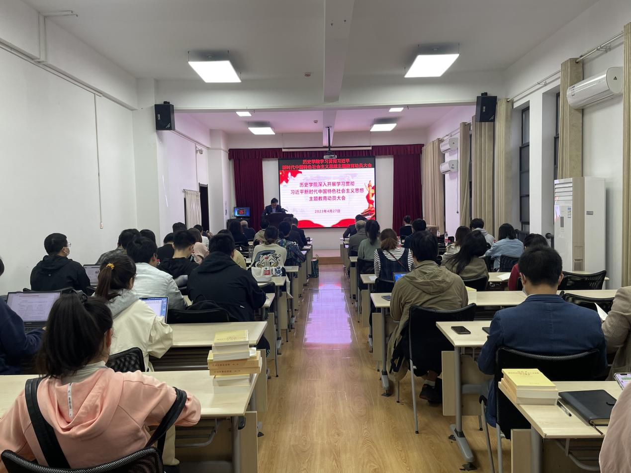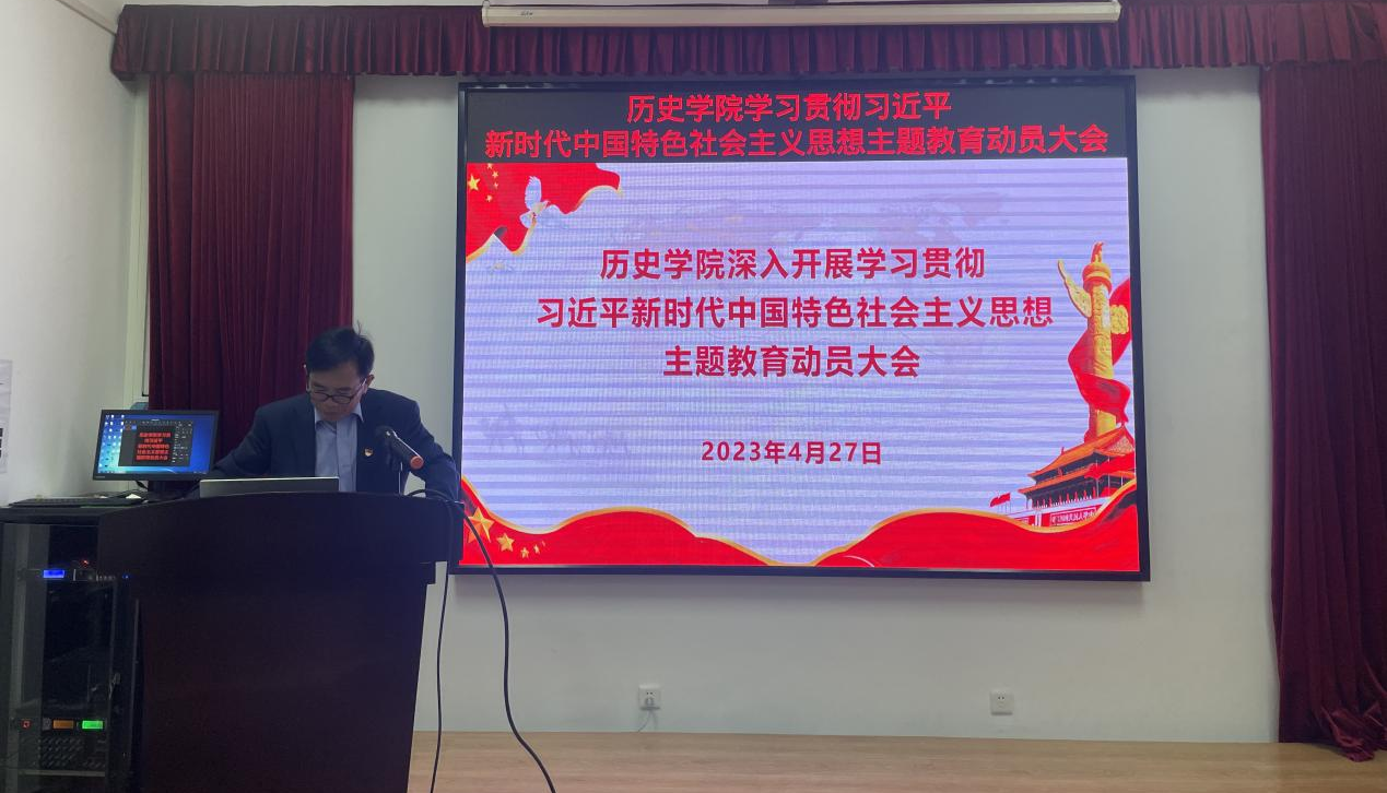 院党委书记刘礼堂主持会议并做主题教育动员部署。他表示,365best体育亚洲官网应从以下三个方面开展主题教育:第一,深刻领会主题教育的重大意义和目标任务。学院全体党员干部要深入学习贯彻习近平总书记重要讲话精神,从坚定捍卫“两个确立”、坚决做到“两个维护”的高度深刻把握主题教育的重大政治意义、理论意义、实践意义,不折不扣抓好贯彻落实。切实将党员干部焕发出来的学习工作热情转化为攻坚克难、干事创业的强大动力,围绕学院“十四五”事业发展规划,坚定不移走历史学内涵式、高质量特色发展之路。第二,坚持系统观念,推进主题教育重点措施走深走实。首先要在理论学习上“下苦功”。坚持以党内教育引导和带动全体师生员工的学习,让党的创新理论“飞入寻常百姓家”。其次要在调查研究上“扑下身”。把开展主题教育同推动学院中心工作结合起来,同大兴调查研究结合起来。要紧盯调查研究,明确调研重点、优化调研方式、用好调研成果,把调研成果转化为解决问题、改进工作、促进发展的实际举措。再次要在推动发展上“见实效”。要坚持学用贯通,坚持学用结合,着力推动发展,让师生看到新变化。最后要在检视整改上“动真格”。要刀刃向内,坚持问题整改贯穿主题教育始终,坚持“当下改”与“长久立”相结合,认真研究制定巩固深化主题教育成果的长效机制,常抓不懈、久久为功。第三,加强组织领导,推动主题教育落地见效。一是要压紧压实领导责任。学院成立了主题教育领导小组,学院领导班子成员要认真履行“一岗双责”,加强主题教育的调研指导,带头讲好党课。二是要突出关键抓手,切实增强主题教育的实际成效。学院要以主题教育为契机,重点针对巡视整改、审计整改等凸显出来的学院事业发展中存在的薄弱环节,坚持问题导向,将思想政治学习与工作业务深度融合,把主题教育成果转化学院事业发展的强大动力。三是要加强宣传引导。充分发挥历史学科、专业和人才优势,发挥院内外平台、载体的作用,运用新闻报道、典型宣传等多种形式,深入宣传党中央和学校党委部署要求,宣传习近平总书记关于主题教育的重要讲话和重要指示批示精神,着力营造良好舆论氛围。